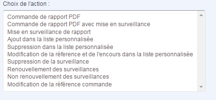 En fonction de l'action choisie, le système peut vous demander des informations complémentaires (prestation, liste sur laquelle appliquer les modifications ...).