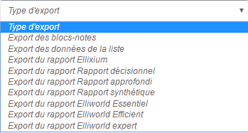 2.     Choisir un type d’export (de rapport ou  de liste)
