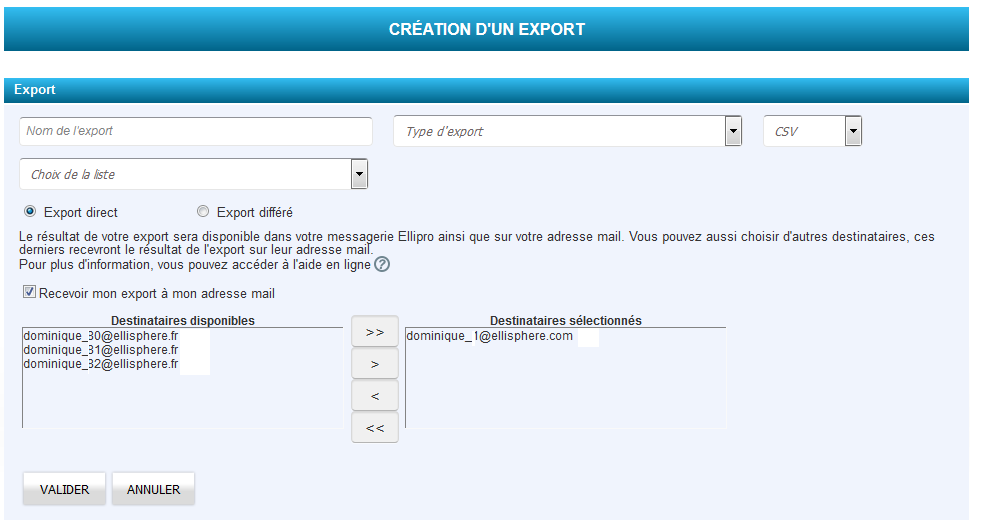 Un email indiquera que la consultation du fichier d'export sera possible via  la messagerie Ellipro; un lien  vers la messagerie sera présent dans l'email.