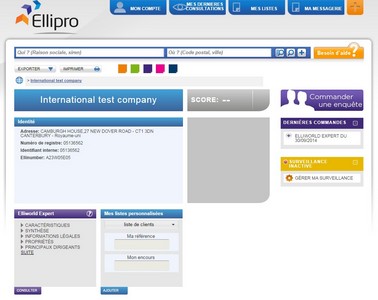 Le score est grisé sur la fiche entreprises à l'international; il est disponible uniquement dans le corps du rapport en ligne. Les prestations à l'international n'ont pas vocation à être surveillées.