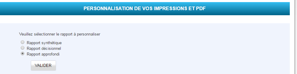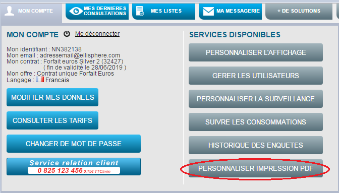 Disponible dans le menu « Mon compte » > « Personnaliser impression PDF » pour l’offre décisionnelle.