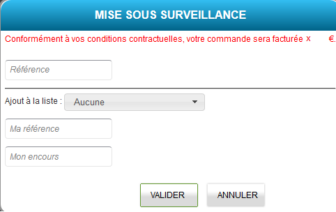 La surveillance d’un rapport est active 1 an (ou pendant la durée du contrat en cours) à partir de la date de mise sous surveillance, sauf si cette surveillance est interrompue volontairement par un utilisateur. Se référer au paragraphe Suppression de la surveillance.