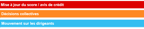 Modification de score ou avis de crédit : si le nouveau score correspond à une classe de risque élevée ou avérée ou si le nouvel avis de crédit a une valeur de 0 €, tous les e-mails contenant un évènement de ce type devront être qualifiés d’URGENT