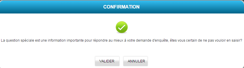 Pour l’enquête approfondie, si la question spéciale n’est pas renseignée, le système vous invite à le faire.