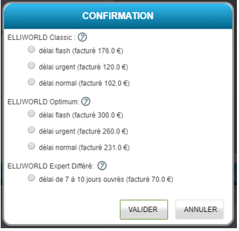Suite à la sélection du pays, l’utilisateur fait le choix de la prestation et du délai souhaités.