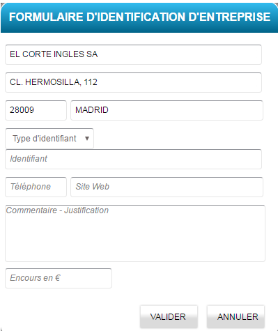 L’utilisateur doit ensuite renseigner un formulaire d’identification de l’entreprise reprenant :