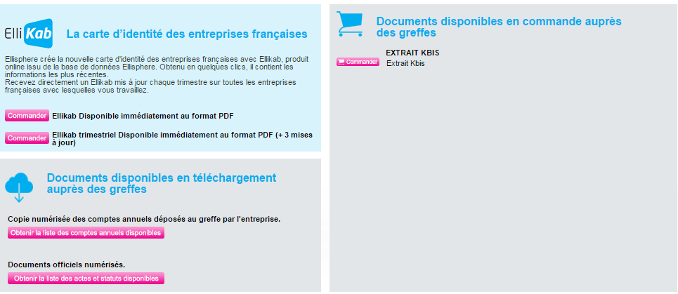 Le KBIS sera une prestation disponible en commande uniquement. La commande sera traitée par nos analystes le temps de mettre en place une connexion directe entre notre système et Infogreffe.