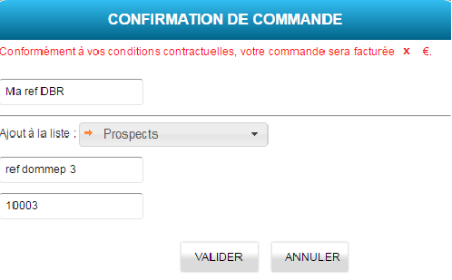 Si votre compte est paramétré pour afficher la confirmation de commande (Si besoin, se référer au paragraphe Personnaliser l’affichage, confirmation de consultation/commande), la fenêtre suivante s’affiche :