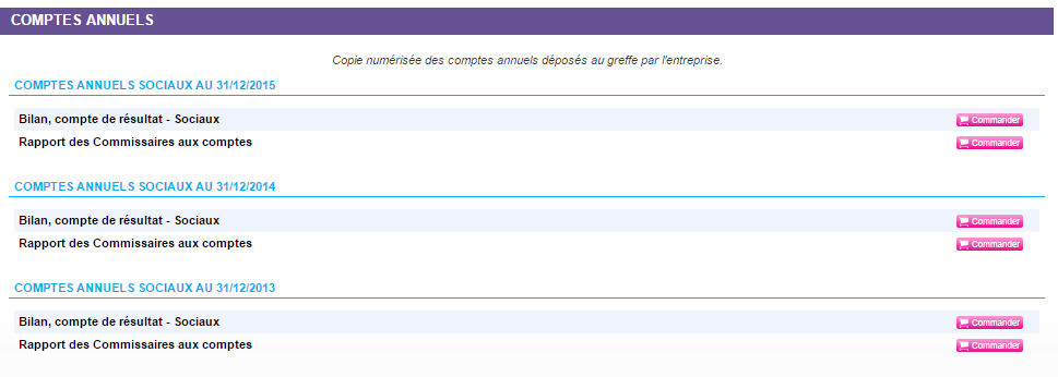Ces prestations sont disponibles sur les entreprises du RNCS (Registre national du commerce et des sociétés).